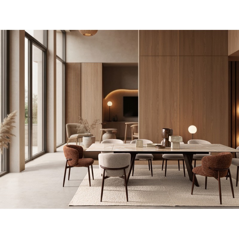 Sedia amalia struttura acciaio noce seduta terracotta boucle