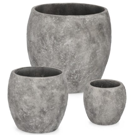 Set 3 p.vaso meili bombato beige in fibra di vetro