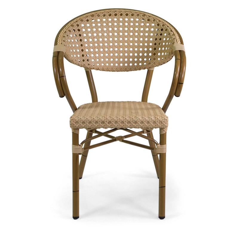 Poltrona francese alluminio polyrattan naturale cm.58x59x45/82h impilabile